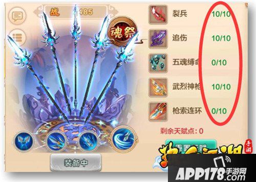 爆发型:裂兵+10 追伤+10 五魂缚命+0 武烈神枪+10 枪索连环+0