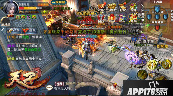 国战一直以来都是《天子》手游的核心玩法,更是玩家展现自身能力的大舞台。周五开启的国战也让备战期充满火药味,想方设法的让敌对国处于劣势,就像开测以来的第一次国战,从实力上楚国是更胜一筹的,但齐国从周五的下午开始,就不断的在边境截杀楚国玩家,设置闯入楚国皇城来达到动摇军心的目的,两国的恩怨情仇被玩家们刻画的非常深刻,让国战从一开始就备受期待。再到正式打响国战时,两个国家都是倾巢出动,经典DOTA式的三路地图,让战局更具策略性 ,真实的物理碰撞,避免了玩家在人群中找不到自己乱放技能的缺点,三十分钟的国战只能用热血疯狂来形容了,团队的配合,战术的使用,完全不同与以往那些拼人头拼战力游戏,造就了一个国战新时代。