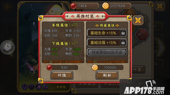 最后再说一下培养问题。前期如果钱不够优先点满1和3技能,然后再点4技能,最后满2技能。神器幻化是加物理防御、法术防御、生命值和闪避等级,大家根据经济自行升级。时装是一定要穿的,属性法强是最好的,其次生命和闪避。下图是我目前的,因为本身没啥钱就暂时这样了。