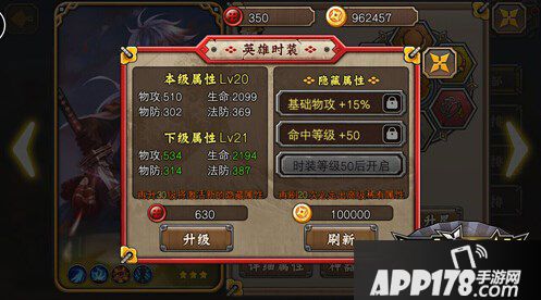 时装,游戏中能让英雄外形更加酷炫,而且还能增加本级和隐藏两大属性的超酷玩法。相对于以数字形式增加基本属性的本级属性,隐藏属性则能以百分比的形式大幅度增加英雄的基础物攻、基础法强、基础生命等等,是玩家提升战力的绝佳选择。在全新版本中,隐藏属性将从3条增加至4条,直接让玩家可以拥有更加可观的属性,战力提升也会超轻松。