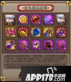 从名称“重生返还材料”和下面的物品中基本可以断定,重生后英雄将直接回复初始到手的状态。培养他消耗的灵魂石、金币、时装币、魂石、符文、神器材料、升级药水等等都会返还。