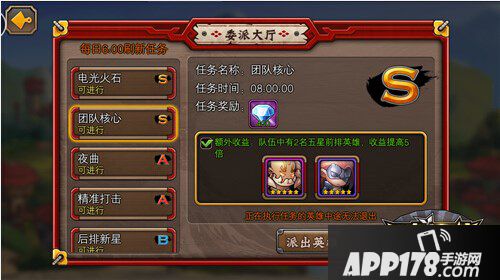《忍者萌剑传》全新推出的委派大厅,让玩家每天都可以派出英雄完成10个不同的任务,来获得钻石、金币、血石、时装币、魂石等奖励。同时,委派大厅中S、A、B、C四个档次的任务,都需要特定英雄去完成才能获得多倍收益。下面,小编就将放出出产钻石的任务详情,一起来看看你准备好这些英雄了吗?