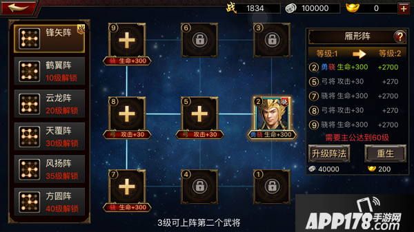 升级阵容需要60级。不同的阵法也需要达到一定等级才可以解锁。