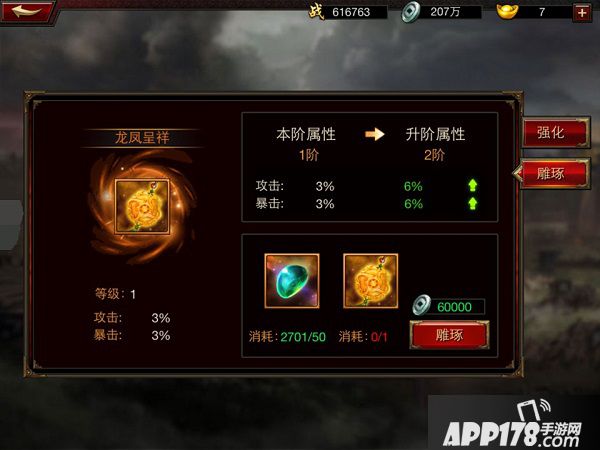 饰品除强化外,还可以使用雕琢功能进行加成。在饰品雕琢中,你可以消耗璞玉来提升饰品的雕琢等级,雕琢到一定等级后,再进行饰品雕琢需消耗同类饰品。璞玉在游戏中的很多功能玩法中都可以获取,每次雕琢等级提升都能够为饰品带来大幅的属性提高。