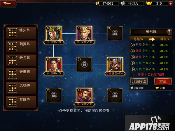 如果各位主公玩到了后期,那么红将就是不可或缺的了。郭嘉与曹操作为魏国的两个红将是必须上场的。曹仁从技能角度上来讲也是魏国最厉害的前排,三个技能一个提高抗暴,两个回血,可谓是想死都难,也算不负他魏国超强守将的名声。弓将我比较考虑荀彧,超级奶妈,同时带有驱散技能,可以驱散我方将领的负面状态,十分优秀。下图中为我配的阵容,只是曹仁还没有得到,所以先上的夏侯惇,不过夏侯惇也是很优秀的前排了。有控制,有回复。