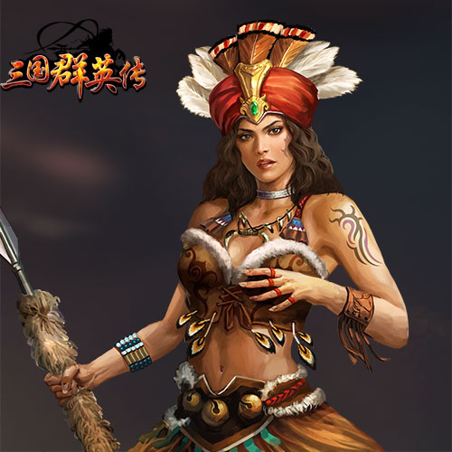 祝融,南蛮王孟获之妻,武艺高强,善使飞刀。抵抗蜀军时连擒张嶷、马忠二将,后随孟获降蜀。在《三国群英传》祝融夫人为骁将,兵种是蛮族勇骑,攻击力高杀伤力大的骑兵部队,克制枪兵。技能1,红莲火凤,对随机3名敌人造成691%伤害。降低其免伤15%,持续17.5秒。技能2,寒芒枪击,中等概率对1名敌人造成630%伤害。斩杀敌方少量士兵。
