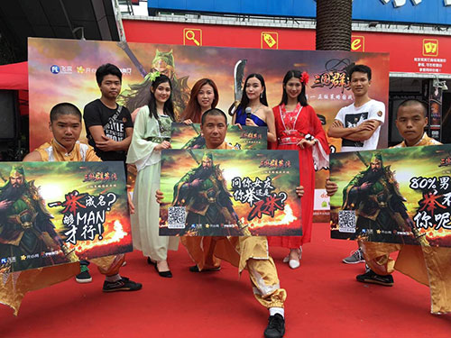活动现场除了青龙偃月刀压阵外,还邀请了国内知名的武术团队进行了武术表演。两位COS成《三国群英传》手游中大乔、小乔的美女也十分吸睛。她们不仅可以和现场的观众们亲密合照,还担任着颁发奖品的重任。说到奖品,那可是相当丰富:iPhone 6S手机、《三国群英传》手游周边、三国人物模型、《三国群英传》手游主题U盘、打火机、鼠标垫、手机壳等多达10余种,只要你来参加,就有奖品拿!