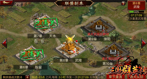 1级联盟可容纳30名成员,那么有了30名玩家,我们是不是能挑战更强大的boss呢?联盟副本满足你的愿望。《三国群英传》手游中的联盟副本可以达到所有联盟成员共享一个副本的设定,只要联盟中的成员一起努力,一定会完成副本,进而获得丰厚的联盟贡献值和豪华大奖。