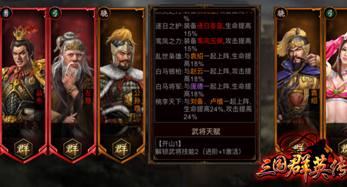 三国乱世,群雄并起,有些能人志士最后并未投靠到魏、蜀、吴三大势力之中,许多游戏将这些人单独拉了出来成立了群雄这么一股势力,公孙瓒、袁绍、吕布、董卓等人都是群雄中的代表人物。而且单有一类三国游戏的玩家也专门喜欢使用群雄势力的武将,那么在《三国群英传》手游中,群雄势力的武将能力如何呢?他们的技能又都是怎样的呢?能不能组成一支强力的5人队伍与其他三大国字队抗衡呢?今天就为大家带来《三国群英传》手游群雄武将推荐。