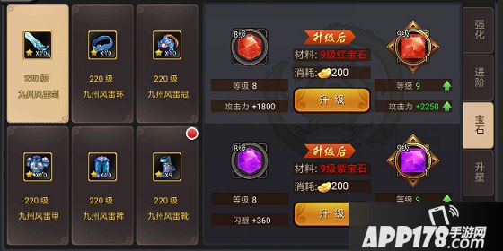 升级宝石可以带来属性的增强,每一颗宝石升级都必须有一颗更低级的宝石作为铺垫,比如想升级镶嵌一颗九级宝石,原先的装备上就必须已经镶嵌好一颗八级宝石。