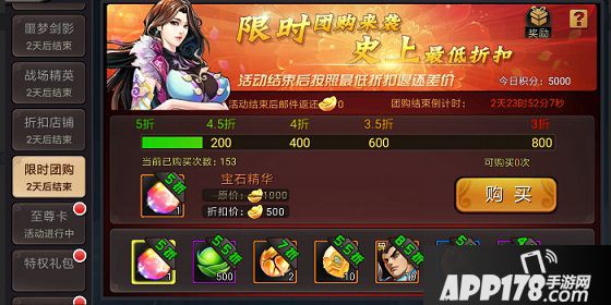比较受玩家喜爱的限制团购,不但在达到一定积分后可以获取相应的奖励,最重要的是,价格优惠,通常最低折扣价会在2.5折到5折之间波动。