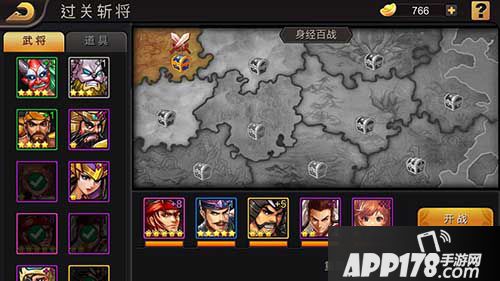 在“过关斩将”过程中玩家可以选择1~5名武将上阵战斗,这里小编建议按照对自己武将操作熟练程度,依次勾选好全部上阵的五名武将,一旦最后上阵的一名武将阵亡,副本将会终止;每次过关分为10个小节,每个小节获胜后,可以领取该小节的奖励;第1~5 小节,每个关卡只有一个BOSS出场,第6小节开始每关出场会2个BOSS,最后一节将有3名BOSS出场。