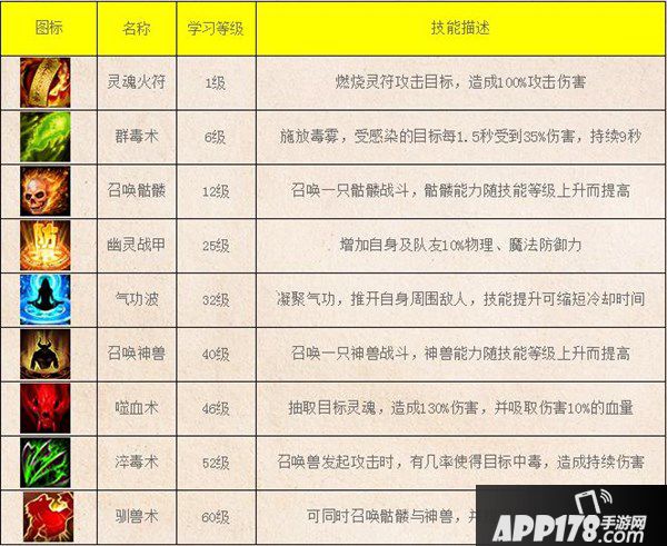 道士是用毒高手。群毒术是道士达到6级就可以修炼的技能。群毒术是向攻击目标释放毒雾,受感染的目标每1.5秒会受到35%的伤害,持续9秒。群毒术是道士刚刚踏上刷怪征程比较常用的群攻技能,一招毒倒一大片,要的就是高效。
