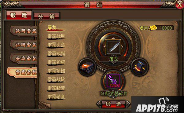 装备的锻造需要武器碎片,防具碎片或首饰碎片,高级或高品质装备更需要万年神玉进行锻造。