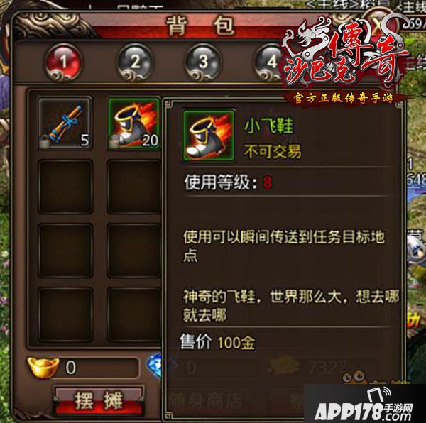 当你点击任务列表中的任务,便会进入自动寻路状态,这时候,在自动寻路的附近会出现一个小飞鞋的图标,点击小飞鞋,就可以瞬间传送到任务目标地点。小飞鞋旁边的数字代表包裹里该道具的数量。小飞鞋在每日签到礼包中就可以获取哦!