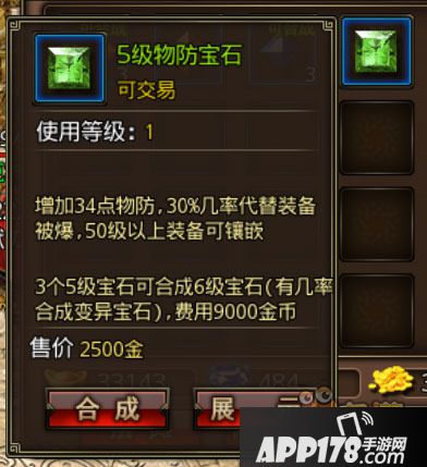 宝石合成:每3颗低级宝石可以合成为一颗高级宝石