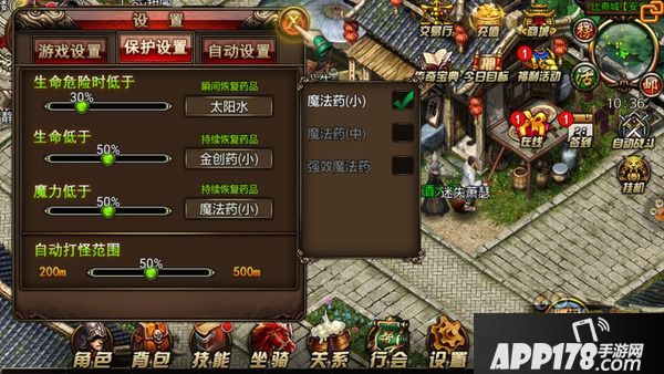 UI界面的设计,针对手游类型和目前玩家习惯进行了调整,合理的布局自然没有塞满整个屏幕的按键,盛大游戏在这些细节上的决定表明了它对传奇的认真。游戏的操作则是使用目前ARPG游戏主流的虚拟摇杆+技能按键方式,不过为了满足玩家不同需求,也加入了点按追踪等人性化的功能。