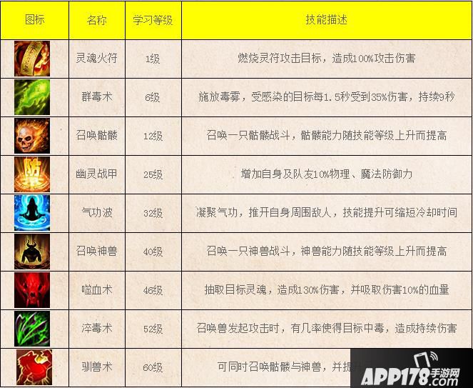 道士是用毒高手。群毒术是道士达到6级就可以修炼的技能。群毒术是向攻击目标释放毒雾,受感染的目标每1.5秒会受到35%的伤害,持续9秒。群毒术是道士刚刚踏上刷怪征程比较常用的群攻技能,一招毒倒一大片,要的就是高效。