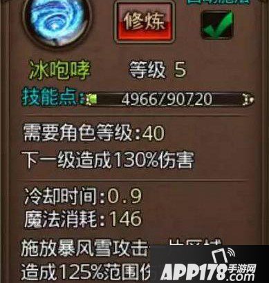 在游戏前期,法师可以用雷电术配合必学技能火墙和魔法盾,3个技能足以让法师在前期随风奔跑自由是方向。后期修炼灭天火单体攻击技能,再配合流星火雨或是冰咆哮群体伤害技能,让法师可群攻可单干,绝对不容小觑。流星火雨1级可以达到120%伤害,而冰咆哮5级的伤害则可达到125%。后期技能书和技能点都是比较稀缺的,作为普通玩家,可以学习冰咆哮来补足法师中前期的群伤技能。