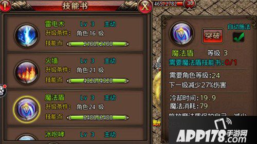 需要指出的是,作为防御和血量都相对较低的脆皮职业,法师的魔法盾技能必须重视,同时火墙的提升也可以增加伤害。