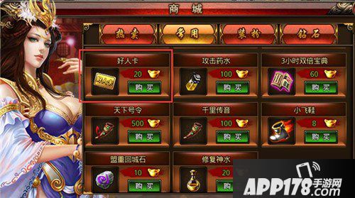 1、游戏中去污洗白最快速、最强劲的方法就是好人卡。使用好人卡可以消除1点PK值,不限制使用次数,多装几次好人就再也不怕红名惩罚了呢!