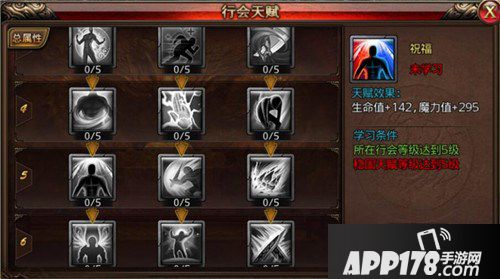 1、玩家消耗行会贡献学习行会天赋,获得自身属性增强;