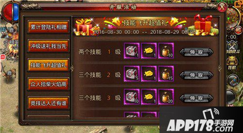 等级提升之后最重要的是什么,当然是战力的提升,这其中技能和宝石是最直接的提升战力的方法,所以,你升级我就送技能丹和宝石袋,登顶沙城不是梦。
