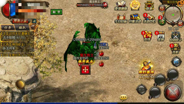 在跨服地图中,每个地图都会有一个怪物密集区,在此处挂机的经验会大幅增加,同时在跨服地图中每天12点30、18点30还会刷新跨服魔龙教主BOSS会掉落各类极品道具以及橙色心法秘籍,有宝物的地方自然就会有争斗,跨服BOSS争夺战无疑也将会是《沙巴克传奇》跨服战的一大亮点。