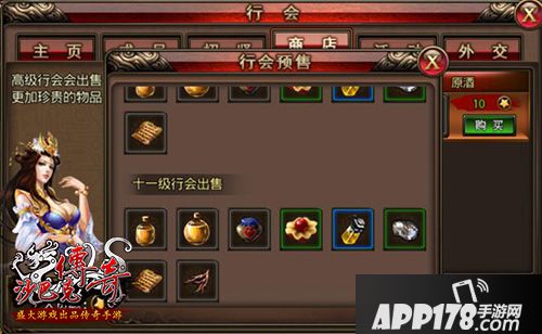 行会商店中,本行会成员可以使用行会贡献在行会商店中兑换道具。行会贡献可以通过行会上香和捐献行会金锭获得。行会商店可兑换的道具有:太阳水、强效太阳水、原酒、技能丹、攻击药水、黑铁矿石、技能书页、万年雪霜等。