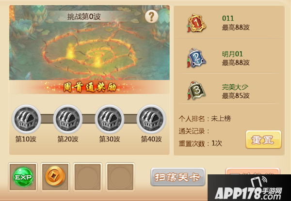 点击开始挑战进入副本,如果觉得关卡难度无法通过,还可以重置关卡数从第一关开始哦。