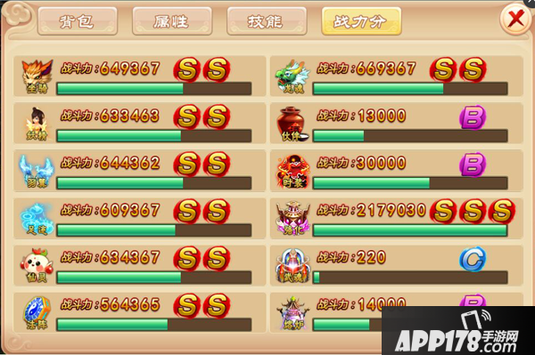 【战力评分等级】根据玩家每个目标的当前战力,每个目标可分别获得C、B、A、S、SS、SSS的评分。