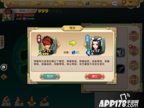 射雕英雄传3d传功玩法详解!射雕英雄传3d传功有哪些用处?在射雕中,我们可以通过传功来让新晋的英雄瞬间获得巨大的力量。传功之后会让师傅和弟子对调属性,等级,品质等等,下面大家跟着APP178手游小编一起来看看吧!
