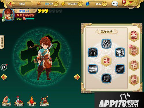 射雕英雄传3d技能升级攻略!射雕英雄传3d手游中,每一个角色都有四个主动技能和四个被动技能,我们可以通过升级主动技能来增加人物的能力,下面APP178手游小编就来给大家说说射雕英雄传3d中技能的升级方式,希望大家喜欢!