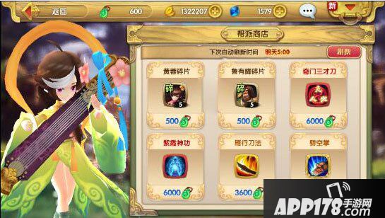 商店中会有一些高级心法和英雄碎片供大家利用帮派贡献兑换,每天自动刷新一次。如果遇到心仪英雄的碎片就赶紧购买吧。
