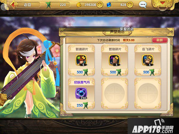 对于华山论剑排名高于100名的玩家来说,每天奖励的声望值足以兑换5个英雄碎片,因此可以在声望有富裕的前提下可以选择使用100声望刷新商店物品加快兑换速度。对于排名100以下的玩家,由于每天获取的声望量较少就不需要在进行刷新了。