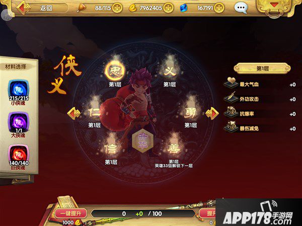 洪七公情缘与侠义增加了很多防御与伤害减免,侠义中增加的抗爆率与爆伤减免更增加了洪七公的防御能力,被动技能增加的暴击也让他的攻击能力不输于其他英雄,桃李天下增加的闪避值也让队伍的生存力大大增加。