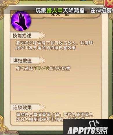 第三个主动技能叫凌太虚:王重阳御剑前冲,对路径上的敌人造成伤害