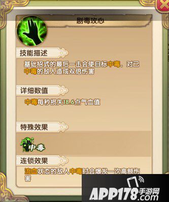 第一个是剧毒攻心,技能效果见下图