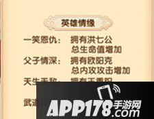 欧阳锋的情缘第一个是和洪七公的一笑恩仇,洪七公每升一星总生命值增加百分之2,这情缘的由来应该就是因为最后欧阳锋恢复记忆后看到洪七公,两人都笑了笑然后一起死了。