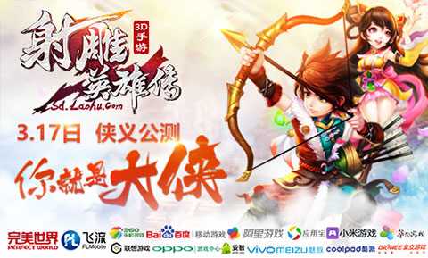 2016年3月17日,由完美世界精英开发团队倾力打造,并与全球领先的移动游戏发行与运营服务商飞流九天联合发行的金庸正版动作武侠手游《射雕英雄传3D》开始全平台正式公测。同时,该手游高品质CG也将于3月18日抢占两大卫视黄金时段,于湖南电视台金牌综艺娱乐节目《快乐大本营》及浙江卫视主打大型原创室内竞技真人秀节目《王牌对王牌》中强势播出。借助这两档金牌综艺的超高热度及关注度,更多玩家将感受到《射雕英雄传3D》的魅力,寻梦江湖,再掀武林风云。这一刻,你就是大侠!