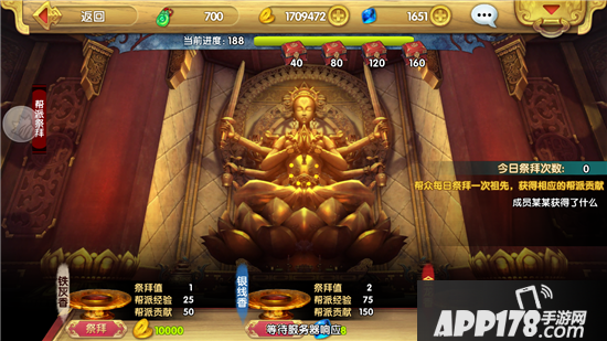 第三个地方就是帮派活动中的祭拜,玩家在祭拜后会获得一些帮派声望,这个道具可以在帮派商店中换取梅超风、黄蓉和王处一的碎片,黄蓉和梅超风都是可以用的,尤其黄蓉基本上都会去培养。