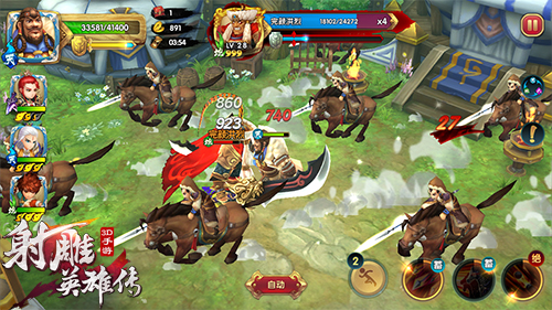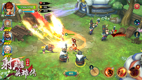 作为一款APRG游戏,操作体验是能否征服玩家的第一要素。本作采用的还是虚拟摇杆加按键槽的配置,左手控制走位右手释放技能。在当下强调战斗系统创新的背景下,本作也是很有自己的特色——动态镜头下的动作捕捉极具张力。郭靖的降龙十八掌、黄蓉的打狗棒法在动态镜头下,与华丽的技能特效相得益彰。