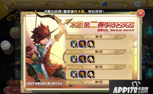 赛季结束后、根据排名系统会通过邮件进行奖励发放。每个赛季碎片奖励不同,但都是五绝碎片,奖励为:五绝英雄碎片、英雄令,排名靠前的还会有盟主令(高级)的奖励。比武每2周为1个赛季,结算一次排名奖励。