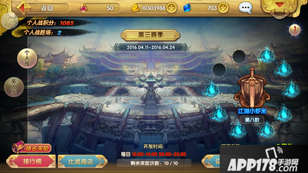 最后就是熟能生巧了,多经历战斗,会很快熟悉当前天梯的环境,并根据环境进行调整,也能锻炼自己的操作。当然,每天的前十次比武有奖励,总次数不受限制,但后面就没有奖励了!如果想要练操作的话,可以在规定时间内一直匹配。