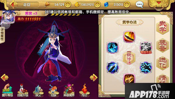总结:我想目前称他为第一英雄,也是不辱使命的,毕竟三大技能同时铺满全屏让人很难躲避。但黄裳也并不是完全无法克制。因为虽然优点丰富。但缺点也很明显,他的所有技能,施法时间都略长,有防范准备的敌人就可轻易打断。并且黄裳防御较低,如果被打中,掉血速度很快,所以如果手中留有控制技能,并属于爆发型英雄的话,是有机会打败黄裳的。但拥有黄裳的人也不用担心,依靠神奇的走位技巧和对切换的把握,比武中搭配黄裳的神技将让你走向巅峰。更多精彩内容请关注APP178手游《射雕英雄传3D》手游专区!