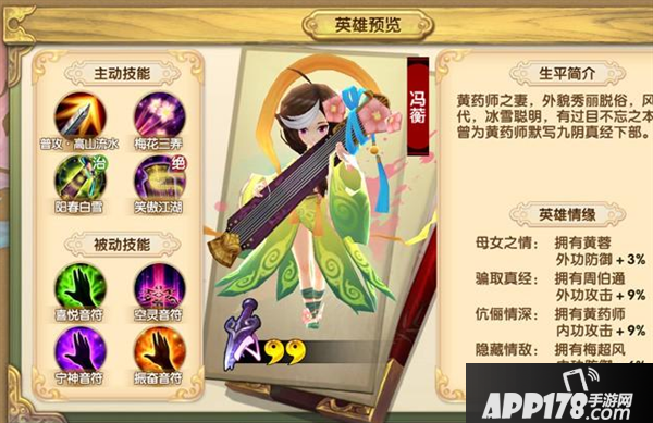 金庸小说《射雕英雄传》之中,冯蘅是一个未出场的人物。而在游戏中,冯蘅是一个超级强力的辅助性角色,在小队作战中能发挥出强大的作用,下面就来一起看看这个英雄的技能属性,以及缘分搭配吧。
