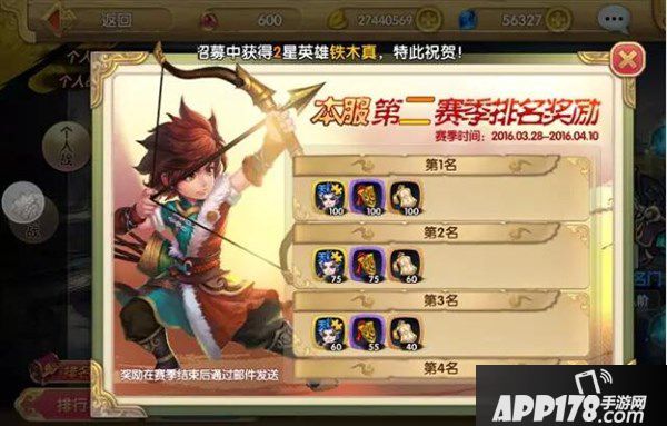 赛季结束后、根据排名系统会通过邮件进行奖励发放。每个赛季碎片奖励不同,但都是五绝碎片,奖励为:五绝英雄碎片、英雄令,排名靠前的还会有盟主令(高级)的奖励。比武每2周为1个赛季,结算一次排名奖励。