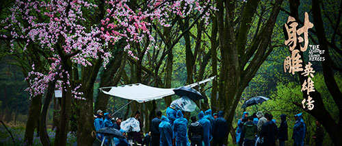 从本次曝光剧照可以看出,新版《射雕英雄传》中多数场景均为真景拍摄或场景实搭,粉桃绿树、山林浮水、雾笼清江,可谓“鱼游天上餐云影,树倒波心濯练光”,彻底告别了棚中拍摄容易导致的突兀画风以及粗糙的“五毛特效”。不过美轮美奂的背后却是幕后团队付出的辛苦与汗水。剧照中可以看到演员与工作人员无论夜间低温还是晴天微雨都在坚持拍摄,敬业程度可见一斑,《射雕英雄传3D》手游玩家也留言表示支持:“冲着这种认真的态度和山水画一样的景致我都会追新《射雕》,相信剧情更不会让我失望。”