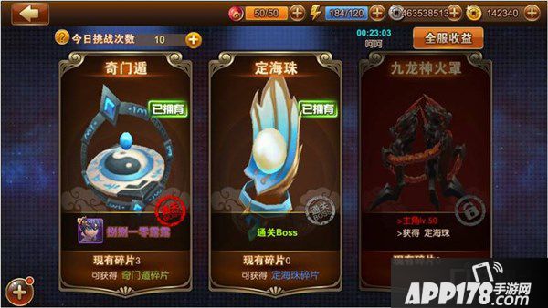 在法宝副本中,玩家可以通过战斗获取法宝碎片,收集法宝碎片可获取法宝神器,每种法宝副本将会有特定的战斗条件以及开启条件,每个法宝副本由多个关卡组成,法宝副本的第一关在开启副本后自动解锁,后续关卡按照通关顺序解锁,通关所有关卡后法宝副本通关,每次关卡战斗结束都会根据目标达成情况和伤害量给予评分,根据副本中所有关卡的评分计算副本评分进行排行,而每日0点排行榜排名最高的玩家,将成为法宝副本的隐藏BOSS,玩家每日可以挑战每个法宝的隐藏Boss一次,有很高的概率获得法宝碎片。