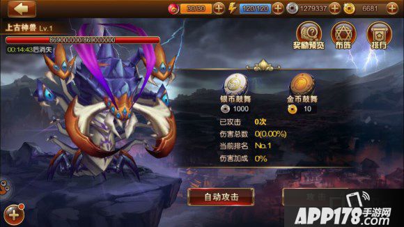 战斗开始后,可以进行鼓舞,鼓舞可以选择银币或者是金币鼓舞。神兽消灭或活动时间结束后,根据伤害量排行榜发放奖励。排名最高的和进行最后一击的玩家会获得奖励,在复活上如何把握时机就是玩家需要注意的啦!